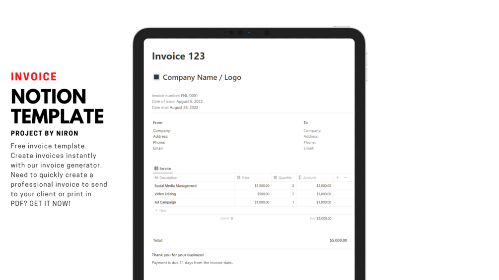 Free invoice template. Create invoices instantly with our invoice generator. Need to quickly create a professional invoice to send to your client or print in PDF?